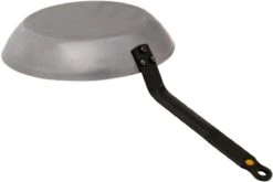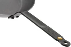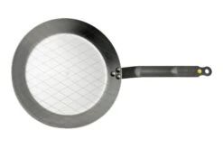 Esta sartén de Buyer Mineral B Element es una sartén especial que tiene un precio muy competitivo. Está hecha de acero al carbono. Un tipo de acero que no es inoxidable. Eso puede parecer un inconveniente, pero puede funcionar como una ventaja si se utiliza con cuidado. La sartén es sólida y pesada. No tiene revestimiento antiadherente, pero se formará uno automáticamente al utilizar la sartén. Debido a que las sartenes no tienen un revestimiento antiadherente, pueden cocinar a temperaturas muy altas. Además, puedes utilizar utensilios de cocina de acero sin preocuparte de dañar el revestimiento antiadherente. Estas sartenes Mineral B Element tienen una fina capa de cera de abeja en la superficie de cocción en el momento de la entrega. Esto reduce significativamente la posibilidad de corrosión en el momento de la entrega. También ayuda a aromatizar la sartén, por lo que la sartén es ligeramente más antiadherente desde el principio, que la serie Acier Carbone normal. Se puede utilizar en todas las placas de cocción. Incluyendo la inducción, e incluso se puede utilizar en el horno. Ten en cuenta que el mango de esta sartén se calienta. Lava esta sartén sólo con agua caliente y un cepillo. El jabón está completamente descartado y el lavavajillas causará un daño irreparable a la sartén. Estas sartenes necesitan un tratamiento especial, pero cuando se usan correctamente, es un placer trabajar con ellas.