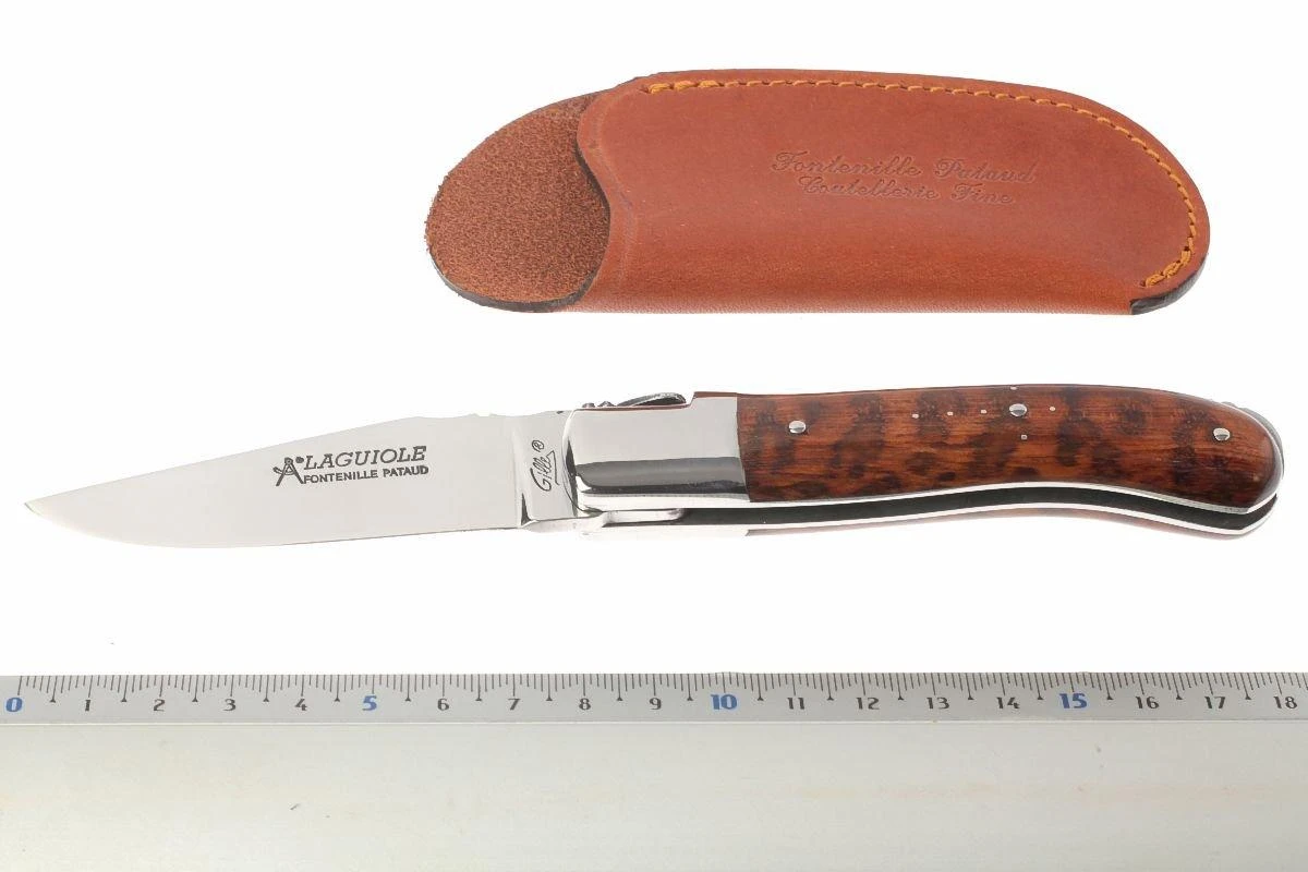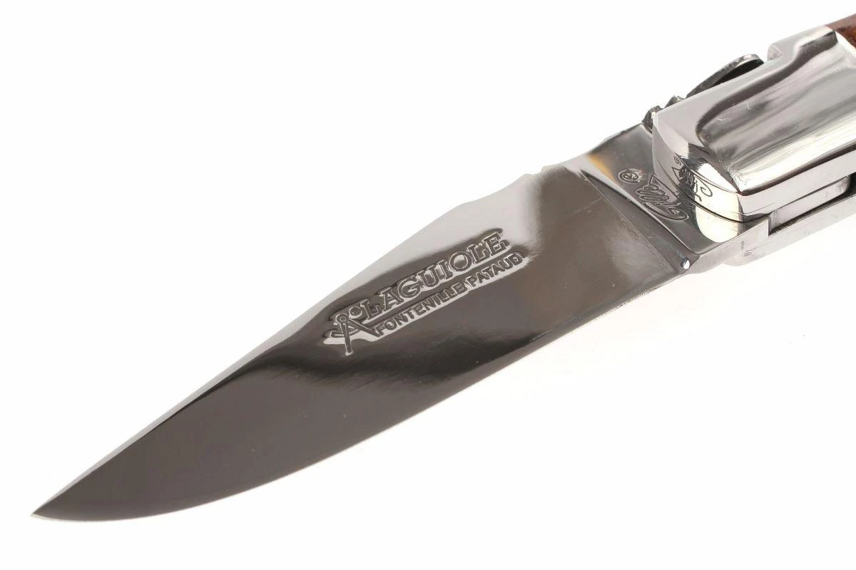 Clásica navaja francesa Laguiole sólidamente hecha a mano. Longitud cerrada: 10,5 cm Mejorada con hoja de acero 14C28N. Mango con cachas de madera de serpiente.
