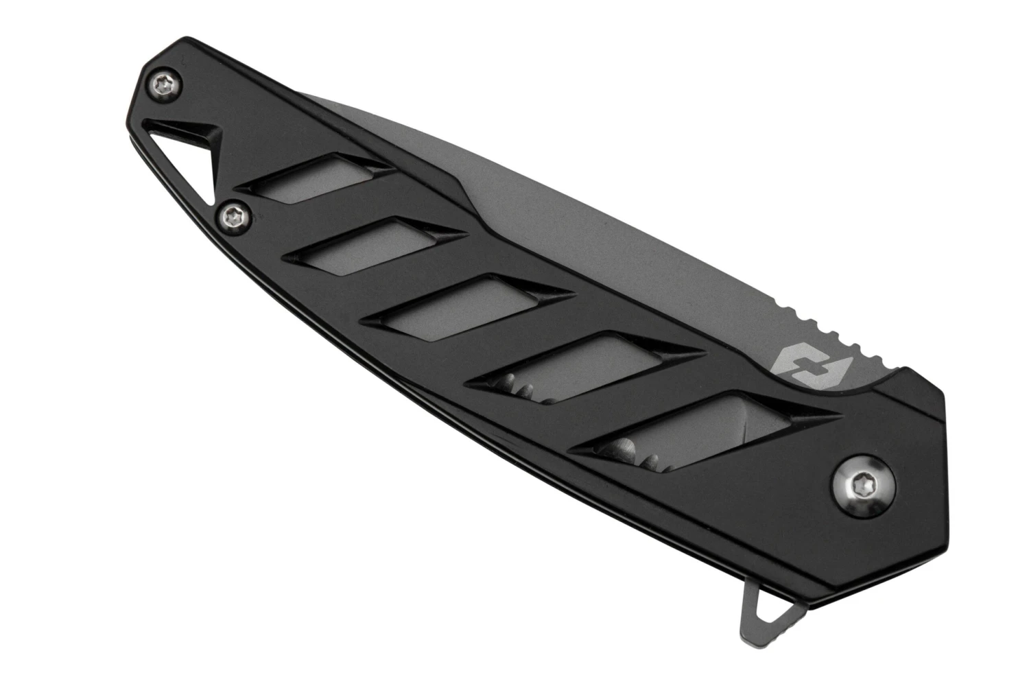 La Schrade Ventricle Folder es una bonita navaja con una excelente relación calidad-precio. La hoja está hecha de AUS10. Un tipo de acero japonés resistente y fácil de afilar. También conserva bien su afilado. El mango es de acero inoxidable resistente, lo que, en combinación con los recortes, da como resultado un cuchillo muy ligero. La hoja se abre con el flippery, a continuación, se bloquea mediante un cierre framelock.